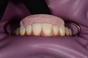 Agendamos a data e aplicamos o tratamento com facetas em resina